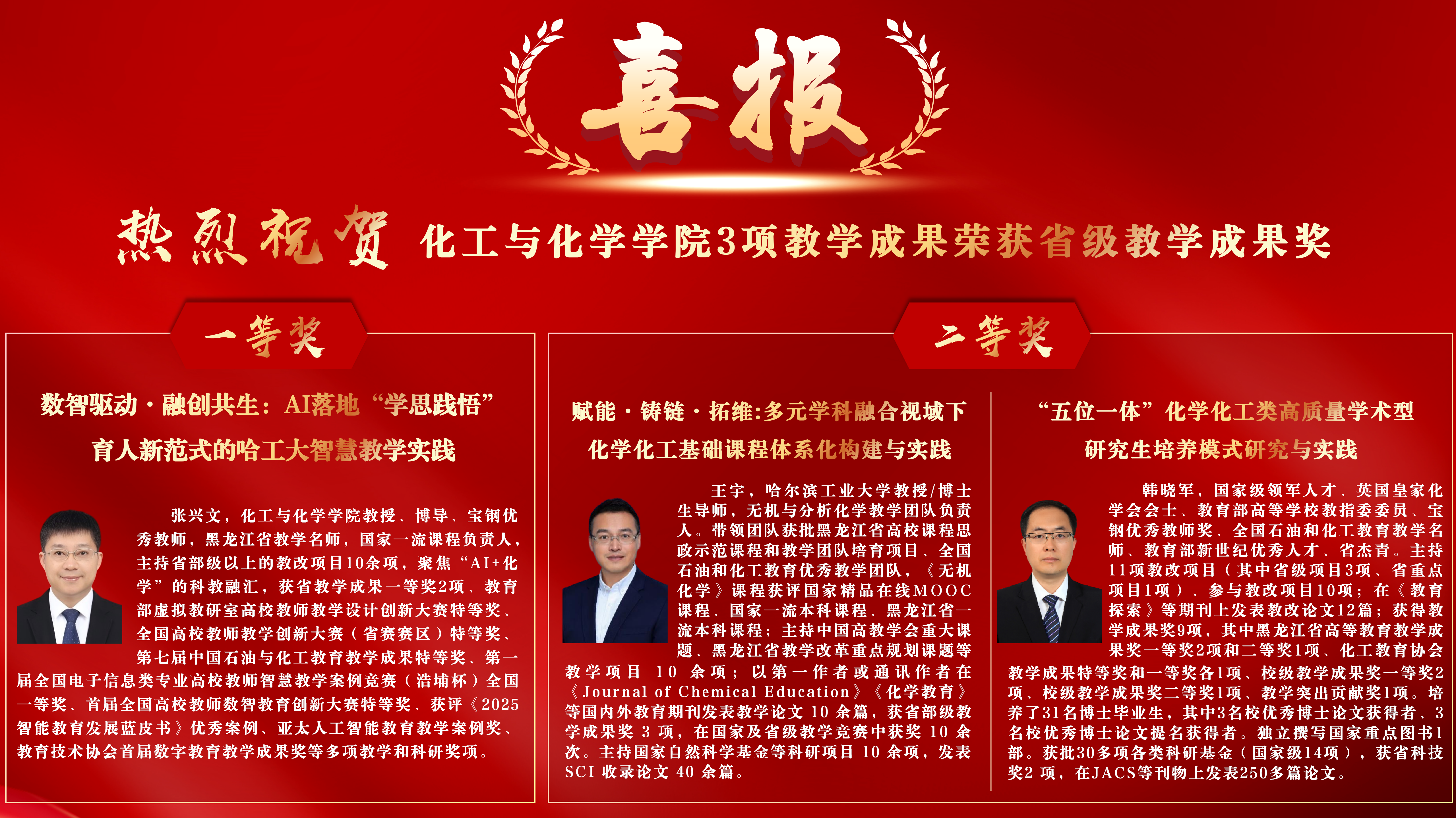 近日,黑龙江省教育厅发布了《关于公布2025年黑龙江省高等教育(本科、研究生)教学成果奖获奖名单的通知》,060net永利再创佳绩,喜获省级教学成果奖一等奖1项、二等奖2项。