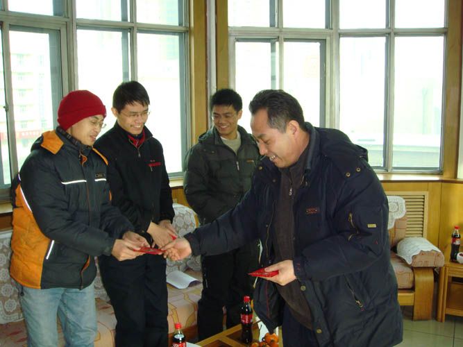 2009年1月25日上午,化工学院会议室笑语盈盈、喜气洋洋。院党委书记姜兆华教授在春节团拜会上慰问寒假留校同学。本科生辅导员刘铭辉老师主持会议。 姜书记在团拜会上,叮嘱留校同学春节期间要注意身体、注意安全,并提出了殷切的希望,希望他们能够充分利用寒假的时间了解并学习哈工大的历史,了解哈尔滨的历史,增强自身的人文素质。他还结合自身的经历,讲述了学习的重要性,并要同学们对自己的未来有明确的规划,认真学好每一门文化知识,更要不断培养自身多方面的能力。同时姜书记还请同学们集思广益为化工学院的建设建言献策并贡献自己的力量。 姜书记代表全院教职员工对同学们表达了亲切的问候和节日的祝福,祝愿同学们在新的一年里身体健康、学习顺利、万事如意,能够取得更好的成绩,同时向留校同学发放了春节慰问金、水果和牛奶等食物的大礼包,最后与同学们亲切合影。 团拜会上,本科生辅导员刘铭辉老师向同学们分发了假期留校安全、学校集体活动等相关事宜的材料,并表达了节日的祝福和问候。 活动中师生亲切交谈,情意浓浓,节日气氛欢快温馨。同学们对学院领导、老师的亲切关怀表示感谢,认为学院给予了他们冬日里的温暖,并一致表示决不辜负学院领导、老师的殷切期望,努力学习、全面成长,为母校和祖国发展建设添砖加瓦,不断奉献。 团拜会后师生共同燃放鞭炮,并共同祝愿在新的一年里,我们的学校、学院、老师和同学们取得更大更多的成绩。