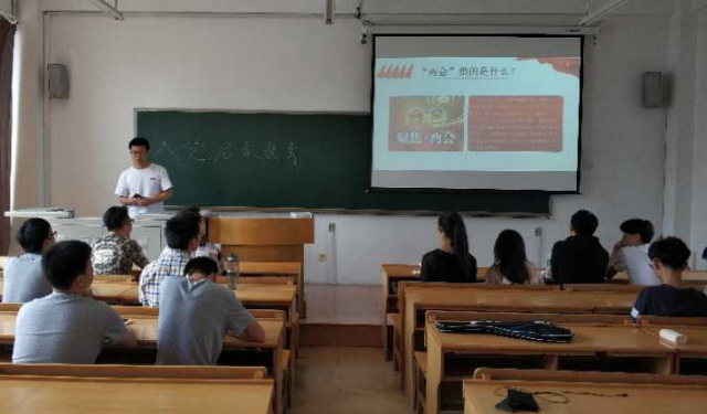 6月3日上午10点,060net永利2017级硕士生第三党支部与本科一年级1714303团支部联合开展了“入党启蒙教育”活动。活动于二校区主楼B817举行,由一年级团支书夏兰蘅主持,两个支部党员、团员同学参加。此次党团活动围绕学习党章做合格党员、了解两会相关知识和入党的基本程序几个方面开展了学习交流。