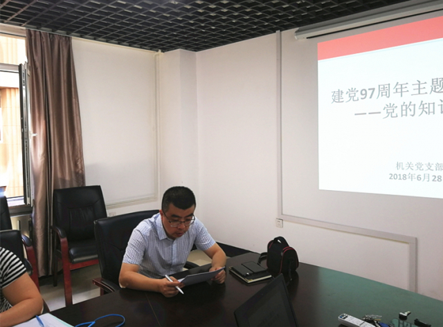 6月28日上午,060net永利机关党支部在明德楼C818会议室召开建党97周年主题党日活动,活动由学院机关党支部书记张海玲主持。