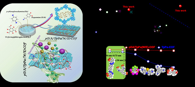 二维共价有机框架是一类由共价键连接的结晶性多孔材料,其具有完全有机无金属骨架、低质量密度、良好的拓扑结构、结构多样性等优异性能,成为高质量分离膜材料的研究热点。然而,由于合成步骤、高温、高压以及难以规模化等关键因素的限制,目前合成制备具有亚纳米级孔径、具有精密筛分能力的无缺陷二维共价有机框架膜面临巨大的挑战!