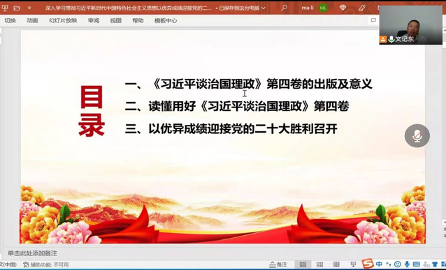 为深入学习贯彻习近平新时代中国特色社会主义思想,不断加强党的政治建设,9月14日晚,由060net永利党委举办的专题报告在线上召开。报告由省委宣讲团成员、黑龙江大学马克思主义学院文记东副教授讲授,学院党委副书记李际鹏老师主持。学院党委委员、班子成员,全院教职工、学生党员参加会议。