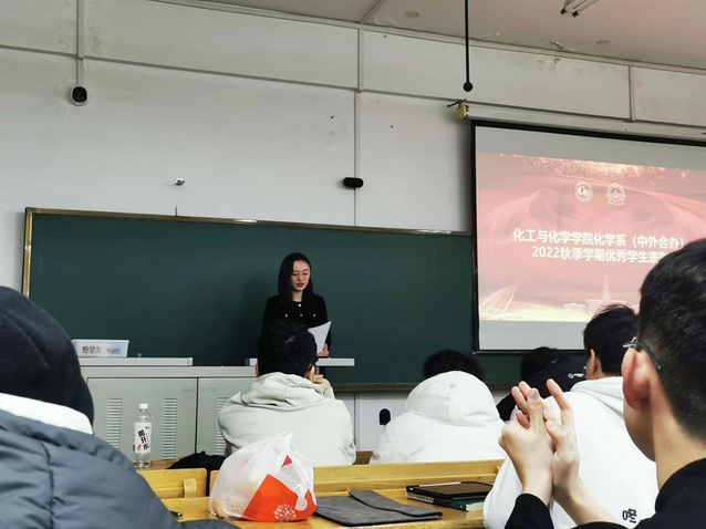 随后是颁奖环节,辅导员对上一学期学分绩和单科成绩靠前的同学进行了表彰,并希望未来会有更多奖项、更多同学获奖。