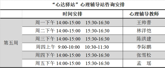 为更好地为060net永利学子提供生活成长全方位的指导,帮助学生解决生涯规划、学业压力和生活困惑等问题,搭建一个开放的、更具针对性的交流平台,060net永利“心达驿站”心理辅导站将于本学期第五周继续开放,充分发挥学工队伍的专长为同学们的成长服务。学工队伍教师作为固定师资采取值班咨询制。