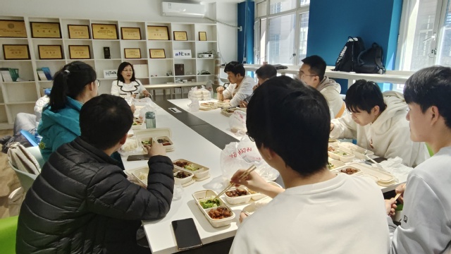 吴晓宏老师绘声绘色地为同学们讲述了航天器的多功能“外衣”——涂层的相关知识,以及涂层在航天领域发挥的重要作用。吴晓宏老师结合自身的科研经历以及教学经验提醒同学们要打牢基础,重视思考的切入点和开创性的思维,在科研中都是不可或缺的知识与能力。学生们与老师边吃边聊,欢声笑语与饭香萦绕在温馨的小屋内。吴晓宏老师悉心回答同学们提出的各种问题,面对困惑未来技术学院的大一同学们的模块选择方面,提示同学们做出的选择要符合内心兴趣,才能驱动好奇心与想象力帮助自身在科研之路上一帆风顺。