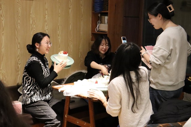 活动开始,学生们在烘焙老师的带领下,体验了蛋糕的制作过程,用事先准备好的蛋糕胚放在托盘上抹面、转盘、裱花,大家兴致勃勃,现场欢声笑语,气氛热烈,在这场甜蜜的活动中,大家都享受着制作过程带来的喜悦,随后,同学们将亲手制作的美味蛋糕用包装纸盒打包起来,准备将这份甜蜜与好友分享。