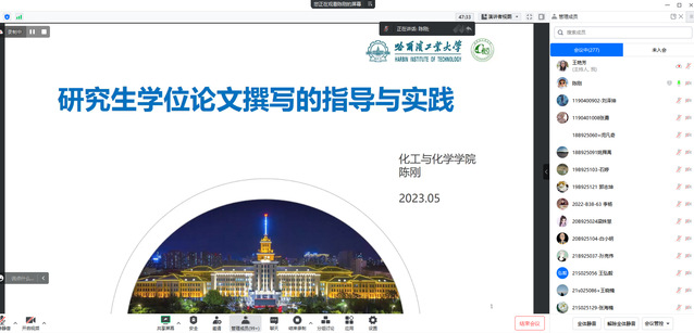 陈刚教授以“研究生学位论文撰写的指导与实践”为题,结合多年来研究生学位论文评审的经验,介绍了研究生学位论文撰写四要素:三点一线、以线带面、规格严格、聚焦创新,并针对四个要素逐一展开详细介绍。陈老师通过论文评阅中发现的问题范例,详细讲解了论文撰写时的注意事项。他强调,研究生在学位论文撰写过程中,要弘扬校训精神,从开题报告起就要严格要求,规范撰写。博士学位论文需突出创新内容,指导教师需不忘初心,创新育人,不断提高研究生指导水平。