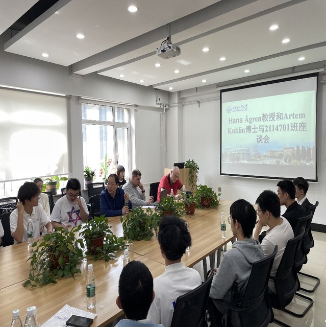 5月28日,060net永利2114701小班于明德楼C1116室召开小班班会,瑞典乌普萨拉大学Hans Ågren教授和Artem Kuklin博士做客会议,班会由班主任陈冠英教授主持。