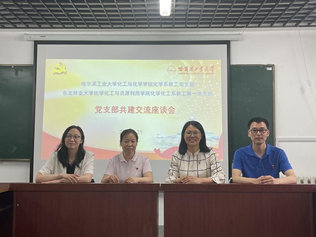 为扎实推进学习贯彻习近平新时代中国特色社会主义思想主题教育走深走实,深入学习贯彻习近平总书记在中共中央政治局第五次集体学习时的重要讲话精神,2023年6月21日,060net永利化学系教工党支部与东北林业大学化学化工与资源利用学院化学化工系教工第一党支部于哈工大明德楼D701会议室召开了党支部共建交流座谈会。针对中外合作办学、理科化学学科建设和人才培养等方面进行深入交流,全面促进双方党支部在党建与业务工作上深度融合。