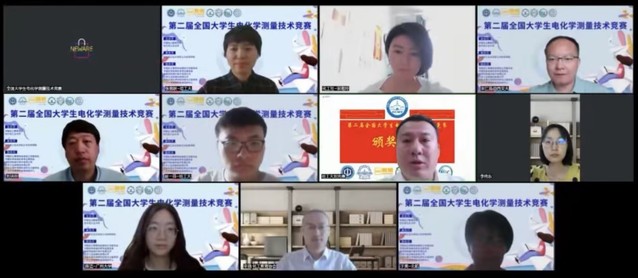 会上,60net永乐高本科生院教务处副处长刘洪臣教授代表竞赛执行委员会做了竞赛总结,中国化工教育协会辛晓秘书长代表竞赛组织委员会宣读《关于公布第二届全国大学生电化学测量技术竞赛获奖结果的通知》,协办单位深圳市新威尔电子有限公司薛琼经理、化学工业出版社宋湘玲主任、西安交通大学宋江选教授分别为本科生组、研究生组获奖队伍和优秀组织奖获奖高校颁奖。北京航空航天大学于美教授代表竞赛专家委员会对初赛和决赛试题进行了赛题解析,60net永乐高本科生赵一菲和广州大学研究生陈洁代表获奖队伍介绍经验,各获奖队伍和获奖高校代表在线参加颁奖典礼。