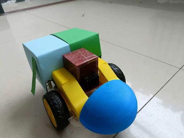 如上图所示,为其中两组学员精心设计自制的动力小车