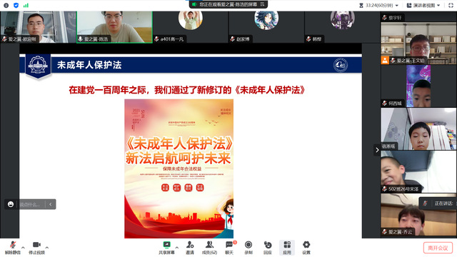 第一部分是由讲师陈浩带领大家开启党的二十大精神学习之旅,介绍了黑土地上的北大荒精神,从实例中让同学们感受改革开放以后巨大的发展变化,理解党的二十大精神的思想内涵;第二部分是漫游传统文化之旅,通过志愿者讲解和播放优秀传统文化视频相结合的方式,带领孩子们了解中国的曲艺文化,并欣赏了一段精彩绝伦的苏州评弹,让孩子们更直观的感受文化的力量;最后一部分是《未成年人保护法》的探索之旅,首先由讲师进行概念讲解和实例介绍,然后让小朋友们化身小法官,对老师给的几个案例纷纷发表自己的看法,使枯燥的法律课堂变得生动有趣起来,并让同学们从中获取相关的法律知识,懂得运用法律的武器保护自己。