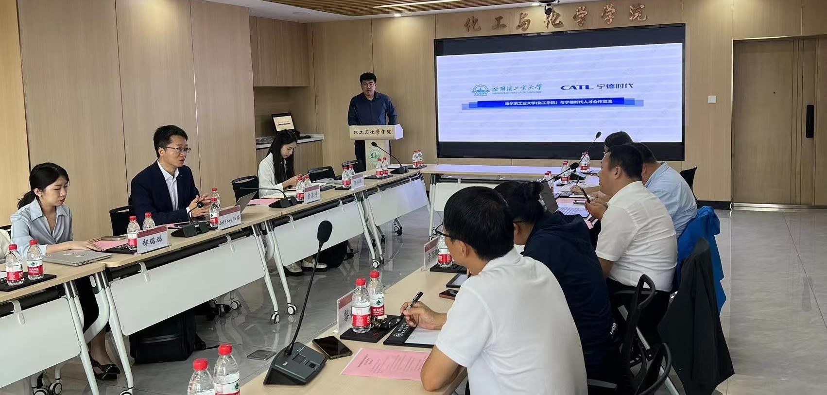 刘光惠代表学院对宁德时代新能源科技股份有限公司的到来表示热烈欢迎。刘光惠指出,哈工大始终与宁德时代保持着密切深厚的合作,双方在科学研究、成果转化、学生实习实践,尤其是在共育产业急需高水平人才方面有很多的发展共识与建设成果。培养产业发展急需的高水平人才离不开像宁德时代这样的行业领军企业的反馈评价与大力支持,近年来一批哈工大优秀学子选择宁德时代,并在企业搭建的平台上取得了优异的成绩,得到了更大的成长提升。下一步,校企双方将进一步加大合作力度,特别是在企业导师、学生联合培养以及企业员工能力培训提升方面探索更加务实高效的合作。