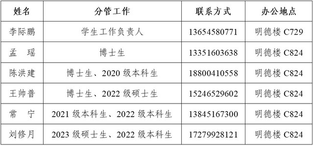 四、学生工作队伍联系方式