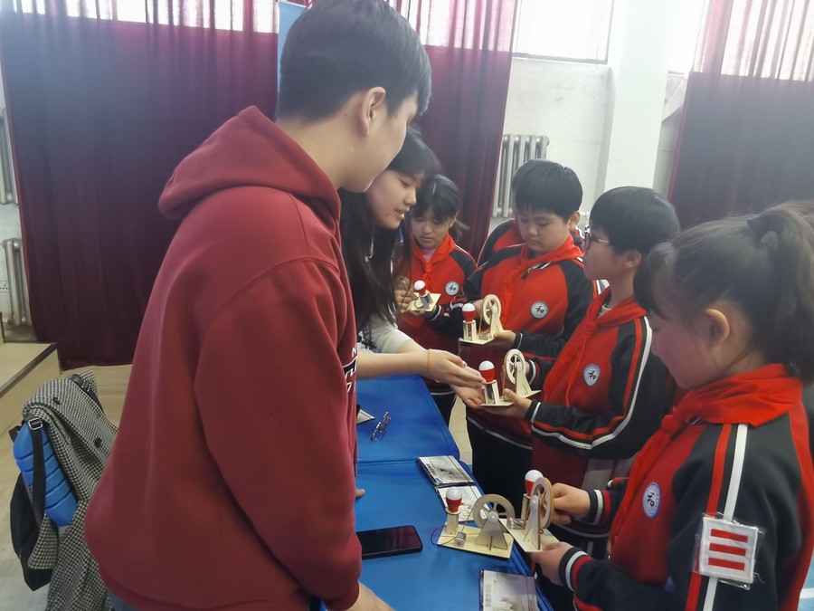 活动开始前,志愿者在小学室内体育馆内精心布置,各种科技展品琳琅满目,准备了“空气炮”、“静电离子球”、“手摇发电机”等一系列适合小学生的科技展品。活动现场,孩子们热情高涨,轮流参观了各个展区,在志愿者的引导下探索着每一个展品的科学奥秘。同时我们用通俗易懂的语言介绍了每一件展品,并让孩子们积极动手操作,在亲身体验中理解科学知识、培养科学思维。活动最后,志愿者为孩子们分发了精心准备的小礼品——“纸树开花”礼盒。