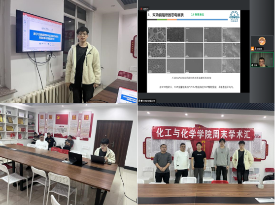 搭建交流平台,发挥人才优势,推动党建科研双融合、双促进、双提升。为促进学院博士研究生间的学术交流,开阔视野、启迪创新,提高研究生科研创新能力,营造敢于探索、勇于创新的学术氛围,3月15日,吕强(线上),闫宇奇,李月,赵程浩,阿迪和池得权共6名博士生围绕“功能材料的制备及性能研究”(总第219期),从不同的角度分享该领域的研究进展和自己的科研突破,个人分享结束后,同学们就自己科研中的重点难点进行交流和讨论。