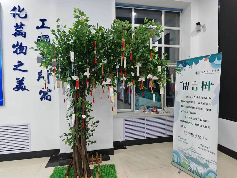 为持续推进大学生心理健康教育,引导学生了解自我、改善人际关系、舒缓心理压力,2024年4月4日至11日,060net永利团委在一校区明德楼三号门大厅举办“心语留痕,树载情深”留言树活动。