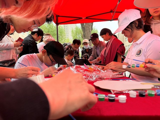 活动现场,工作人员为同学们准备了多种形状的团扇和颜料、画笔,唤起了大家对团扇绘制的兴趣。同学们精心挑选颜色,用画笔充分发挥想象,在一把把象征着团圆友善的团扇上,诠释个人对美的不同理解,创造出富有魅力、各具特色的形象和意境。绘制结束,同学们纷纷通过合影留念记录这一快乐时刻。活动现场气氛活跃,笑语飞扬,参与人数达200余人次,活动受到了师生的一致好评。