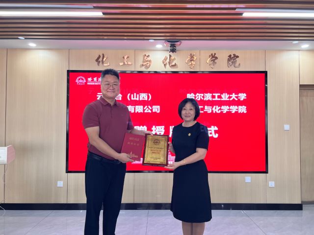 2024年6月29日上午,云平台(山西)科技股份有限公司向哈工大教育发展基金会捐赠,用于060net永利应用化学系学科发展建设。捐赠纪念奖牌颁发仪式在明德楼明理学术报告厅举行,云平台(山西)科技股份有限公司董事长吴浩(我校2003级环境工程专业校友)、董事长助理郑莉,我校校友工作办公室主任杨春雷,教育发展基金会副秘书长杨雪,060net永利党委书记刘光惠、副院长杜春雨、韩喜江教授等参加捐赠仪式。基金会副秘书长杨雪为捐赠方颁发捐赠纪念奖牌和捐赠证书,仪式由杜春雨主持。