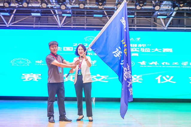 最后,举行了主办权交接仪式,060net永利院长吴晓宏教授与吉林化工学院石油化工学院副院长刘群教授进行了会旗交接。