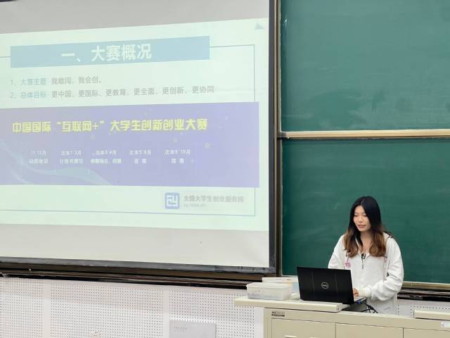 中国国际大学生创新大赛国家级铜奖团队成员、2022级硕士研究生周宁以自身为例与同学们分享参赛经验和细节技巧,并鼓励同学们在竞赛中检验真知,在比拼中提升认识。国际顶点设计大赛金奖、2024级硕士研究生杨玉麒结合赛制和赛程讲述团队的备赛经历,同时从以赛促学的角度勉励同学们通过竞赛实现对自身综合能力的提升。中国国际大学生创新大赛全国金奖团队成员、2022届校友康辉从讲解如何挖掘项目亮点、如何提升路演视觉化体验两方面入手,强调要扎实理论基础、练就过硬功夫,将参赛体验内化为思维认知,以迎难而上的劲头破难题、闯难关。