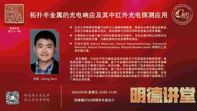 应陈冠英教授邀请,北京大学物理学院量子材料中心博雅特聘教授,国家杰出青年基金获得者孙栋教授到我校进行学术访问,并开展060net永利“明德讲堂”学术报告,欢迎广大师生参加。