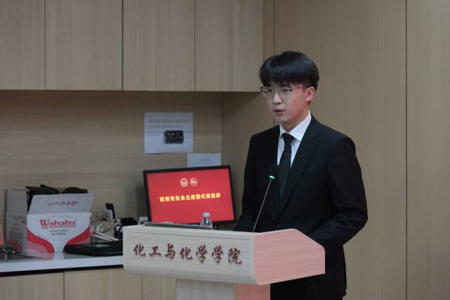 孙永川老师对当选新一届学生会、研究生会主席团成员表示祝贺,并对学生干部提出几点工作期望,一是具备执行力,要练就关键时刻有冲劲、应对挑战有闯劲、同台竞争有拼劲的执行力,想方设法把工作干到位、干出彩;二是具备思考力,面对学生工作主动思考、担当作为,从被动“遇见”到主动“预见”;三是具备协调力,充分整合校院两级平台资源,集众智、聚合力,用集体的力量啃下一块又一块硬骨头。最后,孙老师勉励在场同学以执着勤勉的姿态、务实肯干的精神、宁静致远的情怀投身于强国建设当中,展示化工学子的青春与热血。