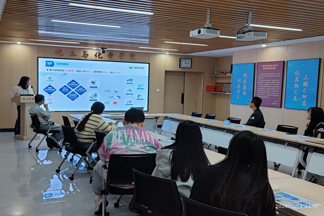 会上,集团招聘经理周忠华详细介绍了研究院的科研布局、核心业务方向及未来的发展战略。恒逸研究院作为国内石化行业的重要科研机构,聚焦石油化工、化纤及高分子材料领域的技术研发,近年来在绿色化工、智能制造和新型材料技术开发等方面取得了显著成绩。此外,周忠华经理还重点介绍了其人才培养战略和招聘需求,向与会学生分享了多条职业发展路径及不同的成长机会,现场同学反响热烈,纷纷就科研创新、职业发展规划及行业前景等话题与企业代表进行了深入交流。