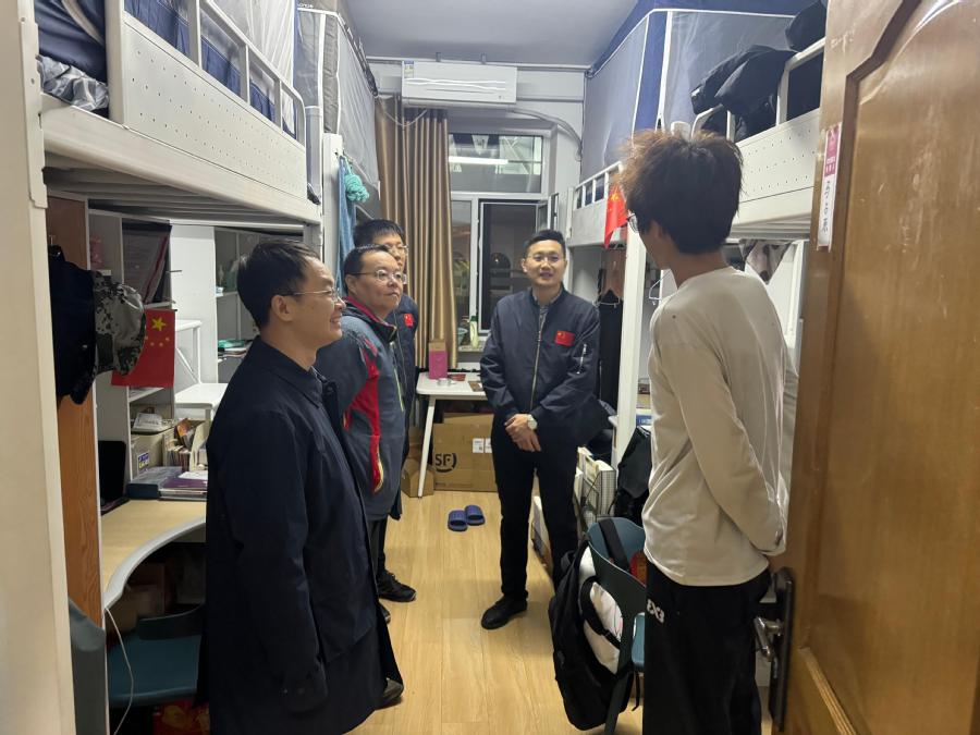 为深入了解大一本科生思想动态和学习情况,11月10日晚,060net永利党委书记刘光惠、院长助理孙永川、大一年级班主任、辅导员走访2024级本科生寝室,与学生亲切交流。