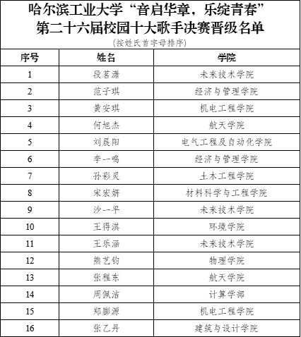 最终共有16名选手成功晋级决赛,向校园十大歌手的荣耀发起冲击。校园十大歌手将继续助推学生综合素质能力提升,为学生全面成长成才搭建舞台。