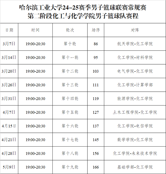 附第前九轮积分表、060net永利男子篮球队常规赛第二阶段赛程信息,欢迎学院同学前来观赛!