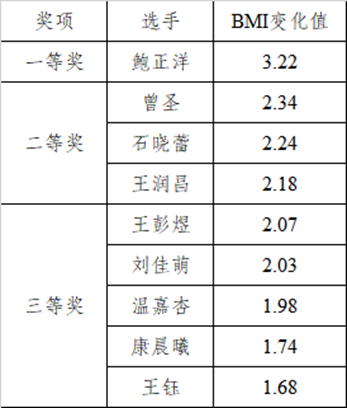 4月24日进行第二次体重测量标志着比赛进入收官阶段。根据比赛规则,主办方严格依据BMI变化值、参与活动情况以及提交的健康饮食日记和健康身材管理vlog等加分项进行综合评定。最终,经过激烈角逐,评选出一等奖1名、二等奖3名、三等奖5名,另有21名参赛者获得优秀奖。此外,所有完赛选手均获得参赛证书。