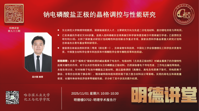 报告题目:钠电磷酸盐正极的晶格调控与性能研究