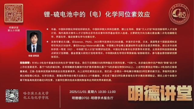 报告题目:锂-硫电池中的(电)化学同位素效应