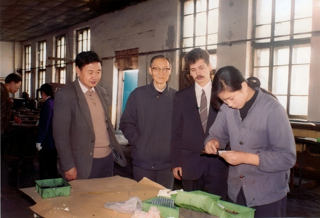 史鹏飞教授(左一)在生产车间