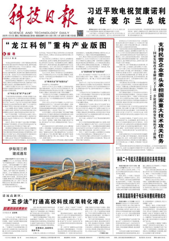 11月12日,《科技日报》在头版头条位置刊发专题报道,聚焦60net永乐高以科技创新驱动黑龙江产业转型升级的实践成效,并重点报道了我院袁国辉教授团队通过产学研协同创新实现技术成果转化的典型案例。