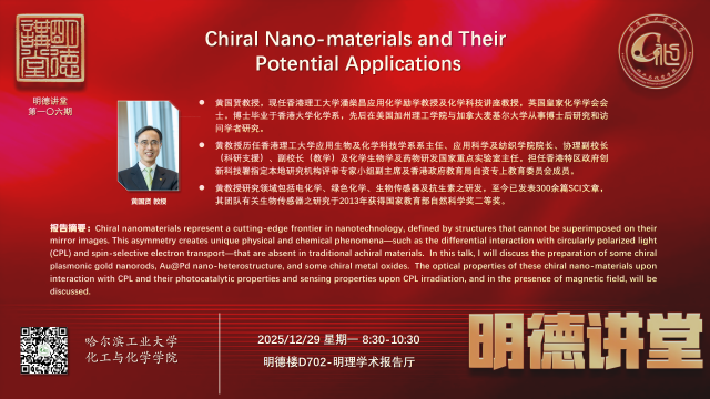 报告题目:Chiral Nano-materials and Their Potential Applications