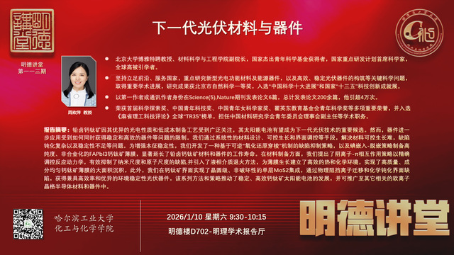 应王家钧教授邀请,北京大学材料科学与工程学院副院长周欢萍教授到我校进行学术访问,并开展060net永利“明德讲堂”学术报告,欢迎广大师生参加。