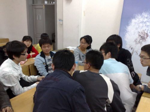 同学们之后进行了分组讨论。大家对专业研究、发展前景、考研就业和实验室情况提出了很多问题,志愿者同学们一一地进行耐心解答。