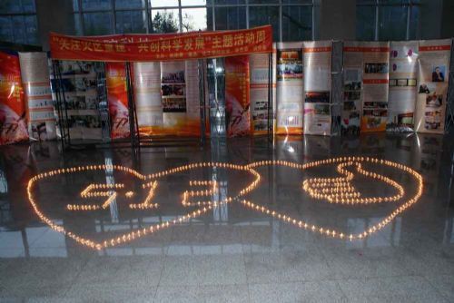 2008年5月12日,一个让历史铭记的日子,一个让中华民族为之落泪并奋发的日子。在这场永载史册的沉重苦难中,记忆不会远去,关爱永不停止。天地无情,人间有情,为了悼念在大地震中遇难的同胞,表达对灾区人民的关心和祝福,2009年5月12日晚18:30,校团委主办,化工学院团委、学生会、研分会承办,0707202班协办了在一校区正心楼大厅举行的5.12汶川大地震一周年纪念活动之烛光祈福。