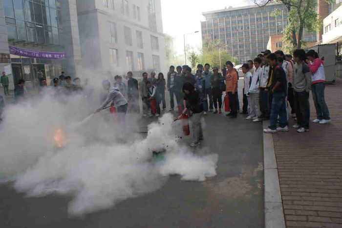 讲座完毕后,学生们又进行了逼真的演习,在来势汹汹的地震、烟气滚滚的火灾模拟环境中,同学们学会了逃生与自救,心肺复苏法、止血包扎法等,在实践中得到了练习。