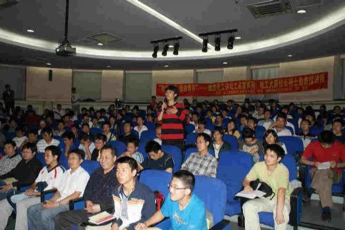 接着,杨士勤教授讲述了担任哈工大校长时历经风风雨雨走过的17年岁月。他带领着全校师生走出了“文革”与“南迁北返”之后学校所经历的困难时期,创造了哈工大历史上的一个黄金时代。他将毕生的心血都奉献给了这块他热爱的土地,每每谈到哈工大的一次次制度的创新和变革,他都感概万千。他幽默诙谐的语言带动了整个会场的气氛,至始至终,每一位同学都在认真的聆听,两个多小时的演讲中,掌声不断,欢笑声贯穿始终。