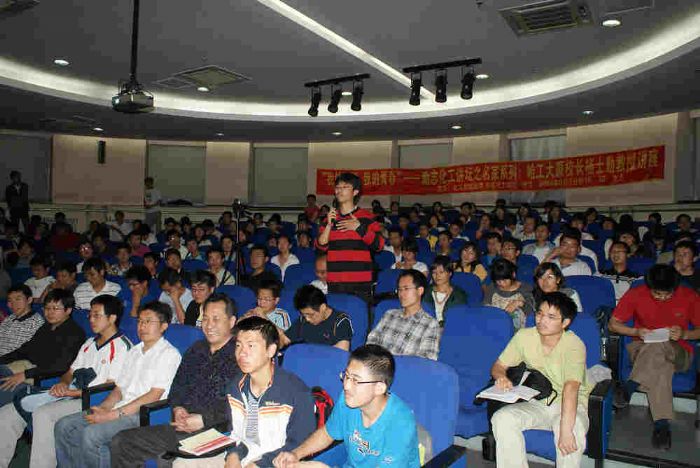 杨教授首先讲述了自己大学的生活,介绍了自己在哈工大的经历。他说,那时的课程任务繁重,还修过江堤,勤工俭学做过搬运工。杨教授感慨说,现在的学生学习生活丰富多彩、相对轻松得多,希望大家能够珍惜这难得的学习机会,努力学习科学知识,将来为社会,为祖国做贡献!