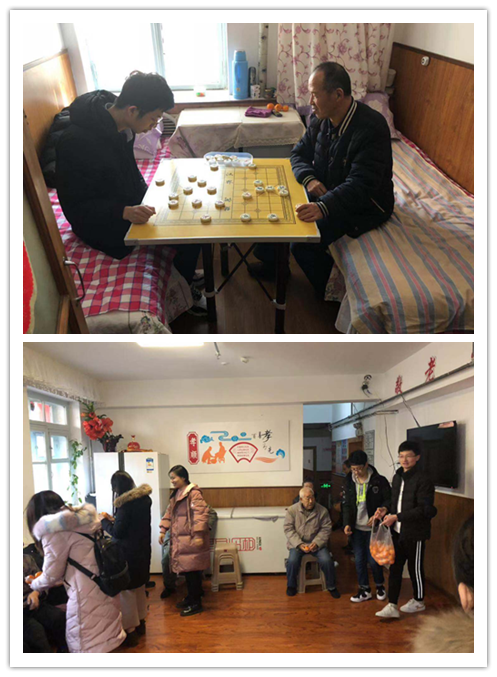 在这个阳光明媚的上午,第三党支部一行人提着新鲜水果去敬老院看望老人。老人们的慈祥的面孔是对我们最真挚的欢迎,通过聊天的方式同学们了解他们的日常生活,兴趣爱好和饮食起居等,同时还为老人们合唱了一首歌曲,三十多位老人都很开心,同学分别给老人们剥水果,和他们亲密的交谈,大家一起互相分享生活中的点点滴滴。有的老人爱下象棋,同学们就陪他们下象棋,在和老人聊天的过程中,大家能够明显感觉到虽然老人们上了年纪,但是他们爱活动、爱锻炼,并始终保持着乐观积极的心态。此次走近敬老院活动让同学们收获很多,大家表示希望以后有机会可以时长来看望老人们,身体力行为他们带去欢乐和安心。