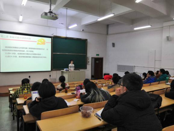 11月13日晚,化工与化学-数学-物理-生命-马克思主义学院分党校2019年秋季学期发展对象培训班学前教育和专题党课在正心11举行。马克思主义学院院长助理巩茹敏教授担任主讲,060net永利组织员张海玲、兼职辅导员廖洁参加活动。党课由学生党建工作中心朱文慧主持。
