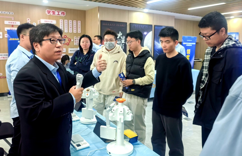 比赛正式开始前,同学们在产品体验区踊跃体验了科易为电动移液器,了解从基础实验操作到实验室运维管理的AI数字化功能。该移液器移液过程精准、可控,能实时记录移液操作数据,进行多维度数据筛选、数据管理和报告分析。