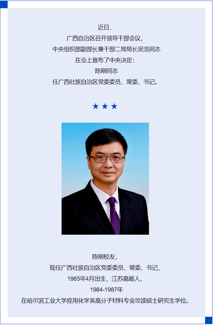 喜报丨我院校友陈刚任广西壮族自治区党委委员、常委、书记