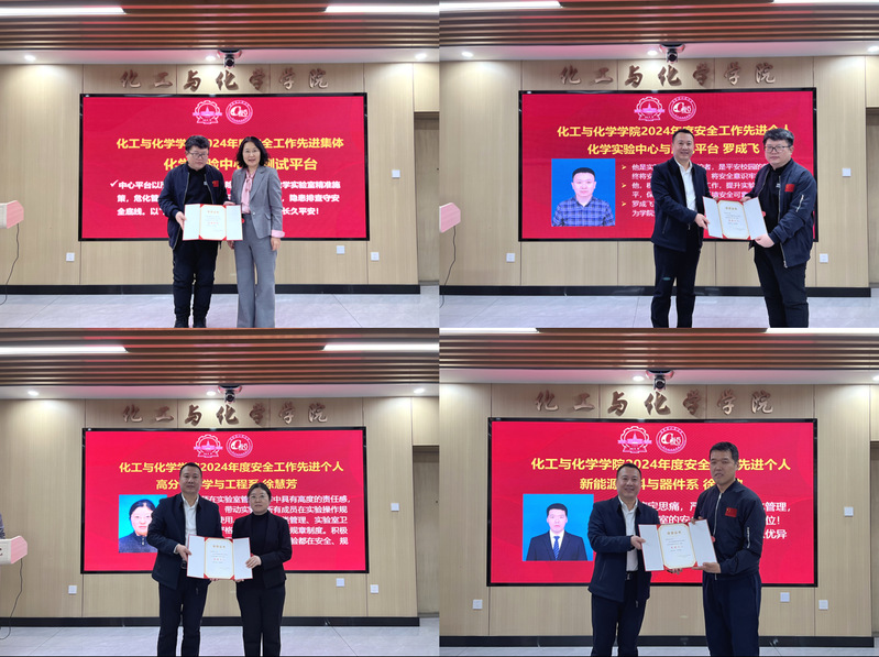 会上,学院专职安全员张秋明介绍近期发生的实验室安全险情,杜春雨宣读《关于对实验室安全事故处罚的通报》。随后张秋明汇报学院2024年度安全工作,杜春雨宣读《关于授予060net永利2024年度安全工作先进集体和先进个人的决定》,学院领导为先进集体和先进个人颁发奖状。