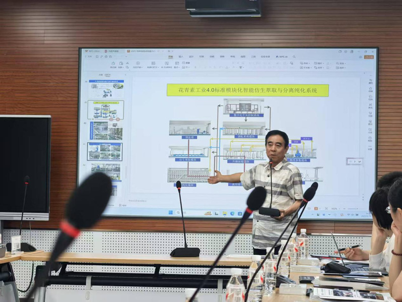 活动期间,我院特种食药与生物化工创新研究中心主任韩雪教授系统介绍了学院在特种经济作物基料高端产品研发、智能化生物制造技术、药食同源活性物质分离纯化、工业AI智能化生产线设计等领域的前沿成果。特种食药与生物化工创新研究中心创始人、首席科学家王振宇教授就其在生物经济、功能食品等方面研发成果转化案例进行详解介绍,并重点对现有中试平台和已产业转化的智能制造产线、航天技术转民用及市场畅销产品等进行示范分享。现代农业研究院重点介绍了相关生物化工全产业链项目谋划推进情况。