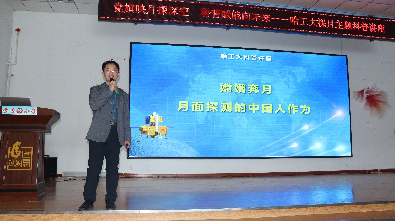 研讨结束后,黎俊为小学生们作了题为“嫦娥奔月:月面探测的中国人作为”的科普讲座。他从古老的嫦娥奔月传说切入,讲述了我国嫦娥工程的探索历程,并特别介绍了我校在探月工程中的科研贡献。讲座通过生动的语言、精彩的图片和动画,激发了孩子们对航天科学的浓厚兴趣。在现场互动环节,孩子们踊跃提问,黎俊老师一一耐心解答,并鼓励他们热爱科学、勤于思考、勇于探索。通过本次活动,科学的种子正在孩子们心中悄然播下。